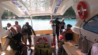 The nice thing with this Phuket diving trip is that for anyone who may get seasick on the bigger boats is this trip only takes 30 minutes and 10 of those is in the bay by the marina so there is not time for the rolling motion to have an effect. Then on arrival at the island there is great snorkelling for the non divers and even plenty of time to go to the beach and relax and go swimming.