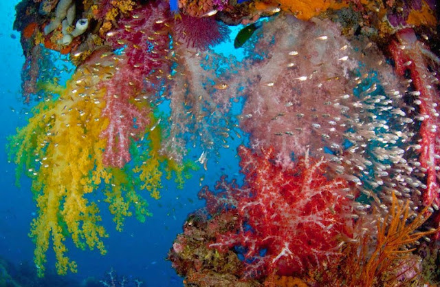 The vizability here is from 20 meters on a bad day to 40 meter or more most of the time. There is a big out crop to the southeast called Hin Muan Deaw rock which makes this site special and a big draw to photographers. Translated it means "Whole roll" (of film) Rock. Its covered in many types of soft corals, big sea fans and several hard corals too. Stunning is a great way to describe it and this is the type of thing that makes a similan liveaboard so special. Anita's reef is what you will imagine a perfect coral reef dive site to be.